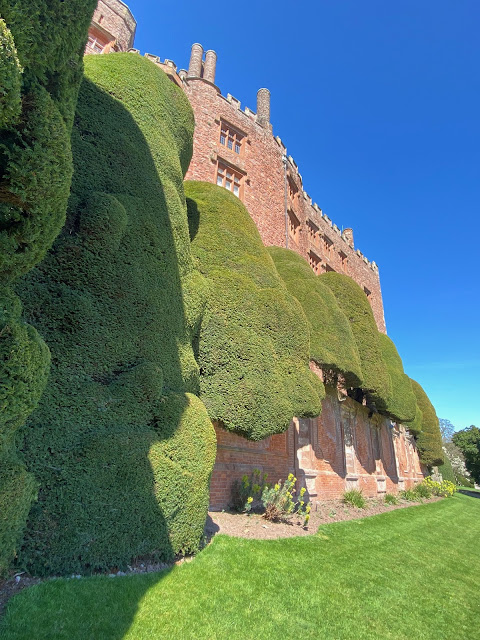 Not only did we tour the house, which is beautifully furnished and has an exceptional art collection, we stoically braved the rain and walked a reasonable percentage of the gardens. We almost gave up trying to find the squirrel hide which is in steep woodland but thankfully persevered, as it was well worth it. Since the introduction of grey squirrels from North America in the 19th century, Britain's native red squirrels have all but disappeared, with small colonies found in only a few areas of the UK. In England there are only two - on the Isle of Wight, and in the Lake District. Thankfully Scotland fares a little better and we were thrilled to sit in the hide and be entertained by two tiny red creatures feeding on nuts (see photo below). I do also have video of the squirrels' antics but unfortunately I've hit my limit on this cost-free blogging platform; over the past 11 years I've posted a number of short videos and apparently the limit is cumulative ☹️